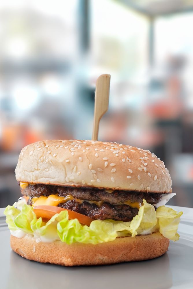 Two beef patties, cheese, grilled onions and our unique sauces. Served with fries