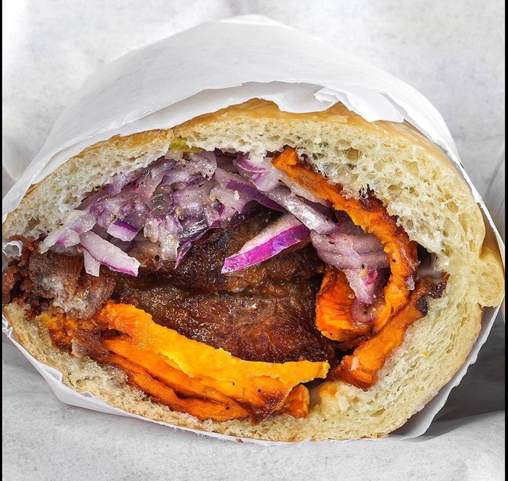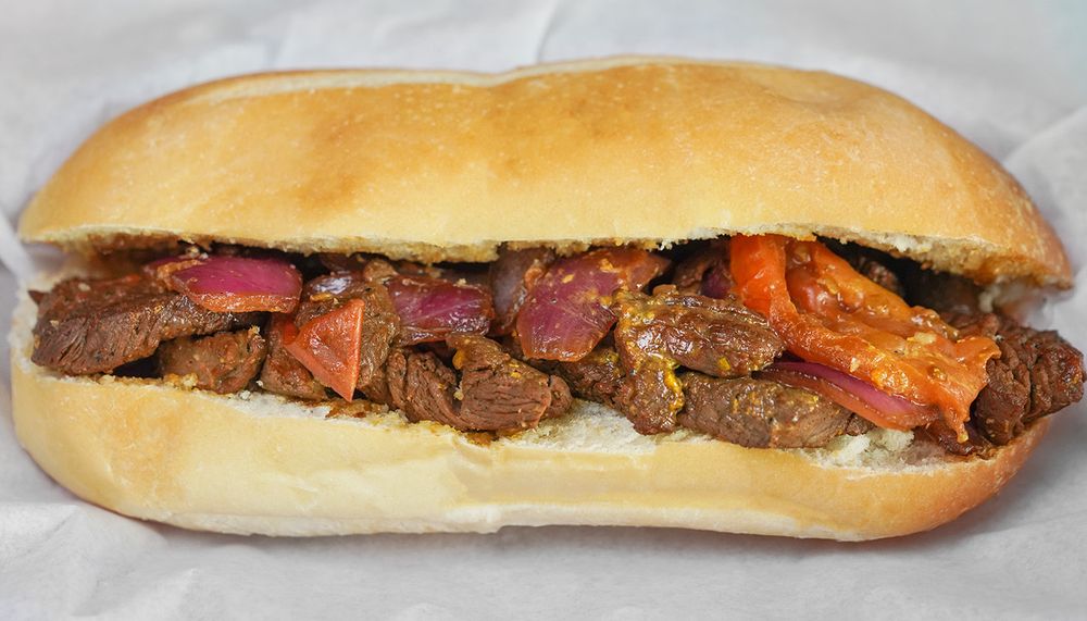 Angus beef sautéed with onions and tomatoes served hot on a roll